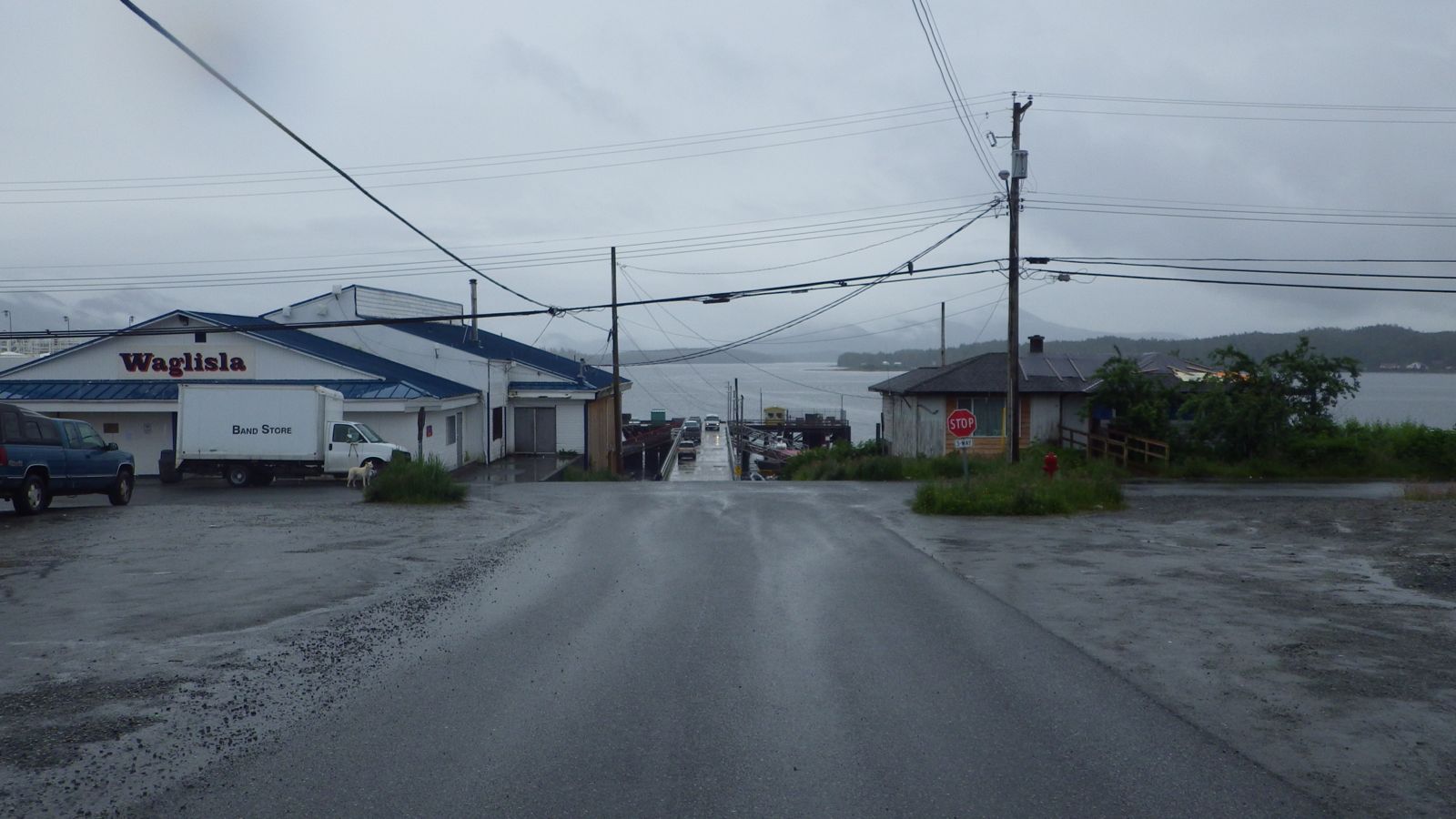 Looking down the main road, towards the dock, open water and east towards Bella Coola.