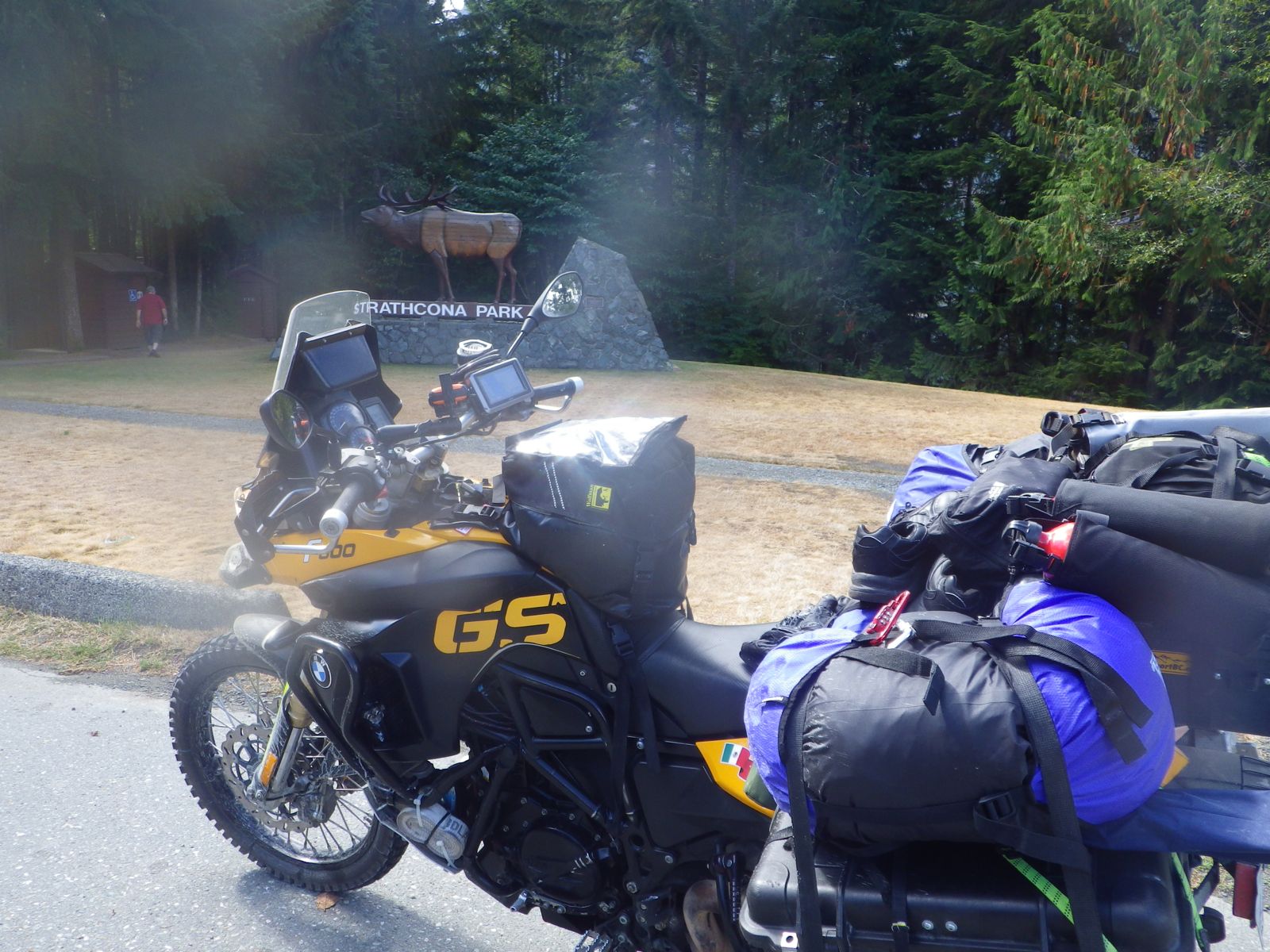 Did I mention that I tried really hard to get my packing fine-tuned and get rid of as much unecessary gear? I spent the time in Tahsis trying to configure and re-configure the gear. I decided to go with these fuel carriers, rather than the more cumbersome aluminum carriers attached to the foot pegs.